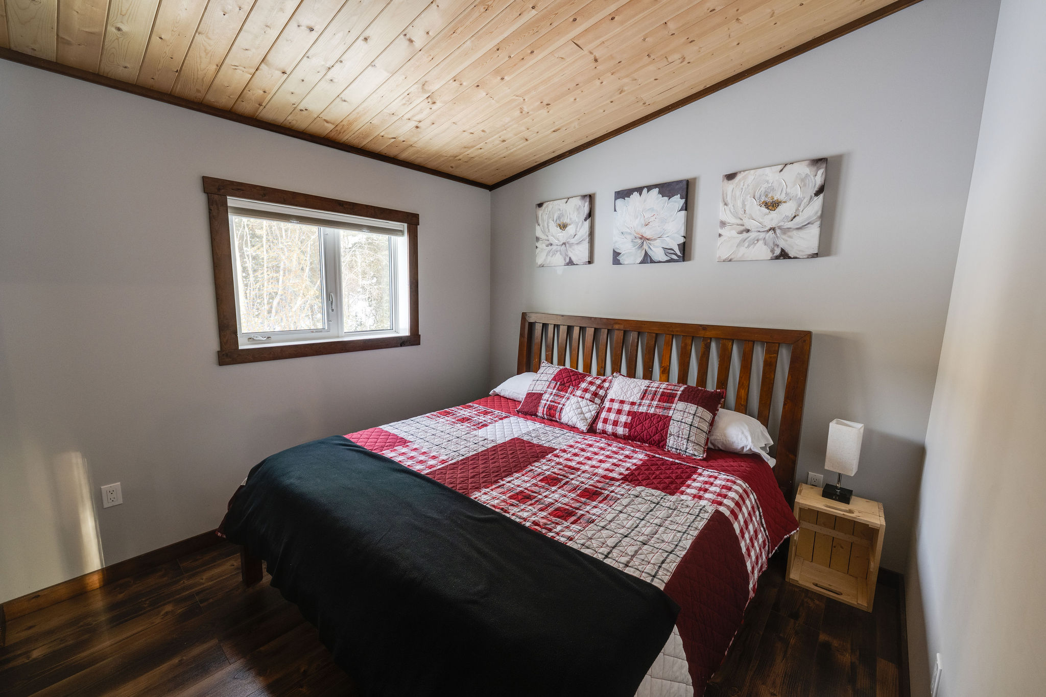 Cabin 4 is a cozy 900-square-foot, single-story home that's fully furnished. It features two bedrooms: the master bedroom includes a king bed, while the second bedroom has a queen bed. The cabin is equipped with a complete kitchen, a full bathroom, and comfortable living/dining room furnishings. You'll find bedding provided, as well as a washer and dryer. Enjoy internet access, smart TVs in both the main room and master bedroom, and a barbecue for outdoor cooking. Please note that there is a minimum stay of three nights, and the cabin is heated with electric heat.